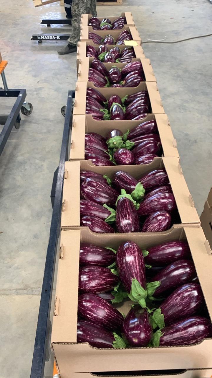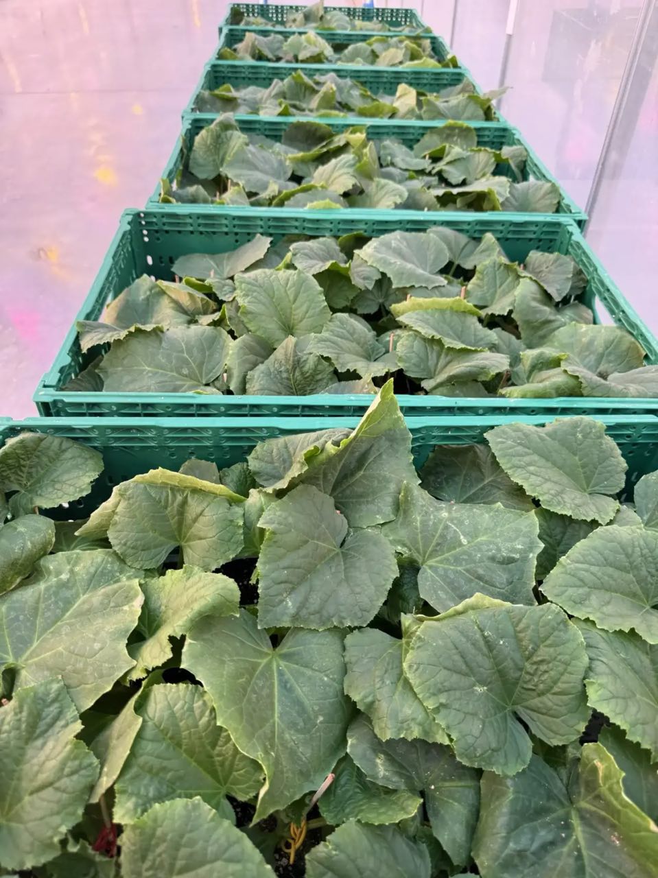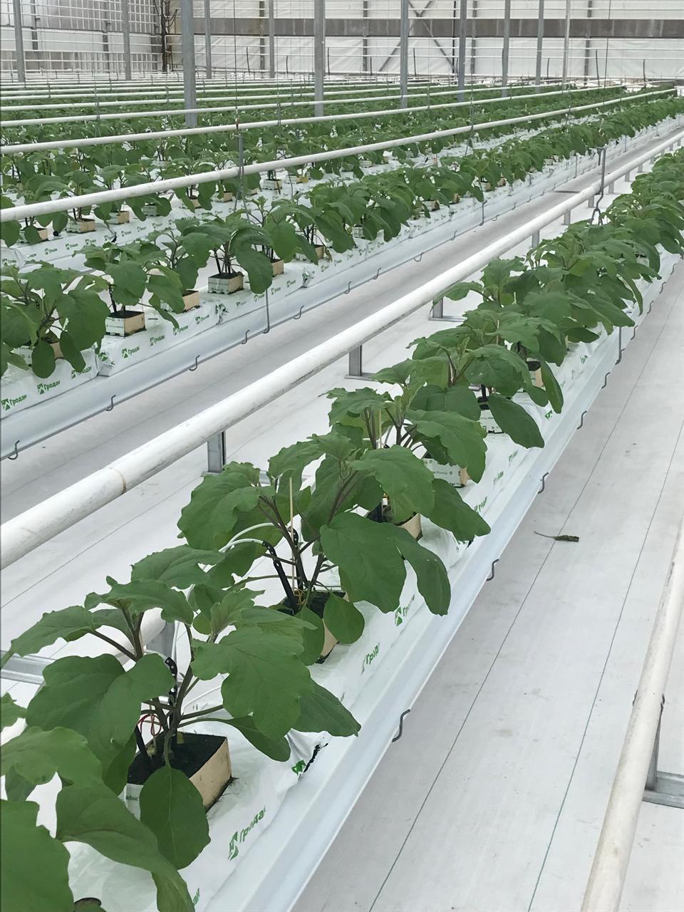 Комбинат единственный в ЦФО производит баклажаны зимой, применяя искусственное освещение растений от 17-20 часов в сутки. В теплицах выращивают традиционные фиолетовые баклажаны, а также круглые и полосатые сорта. Сейчас урожайность теплицы в 2 га -20 т баклажан в неделю. План урожайности на будущий год составляет 57 кг с м2.